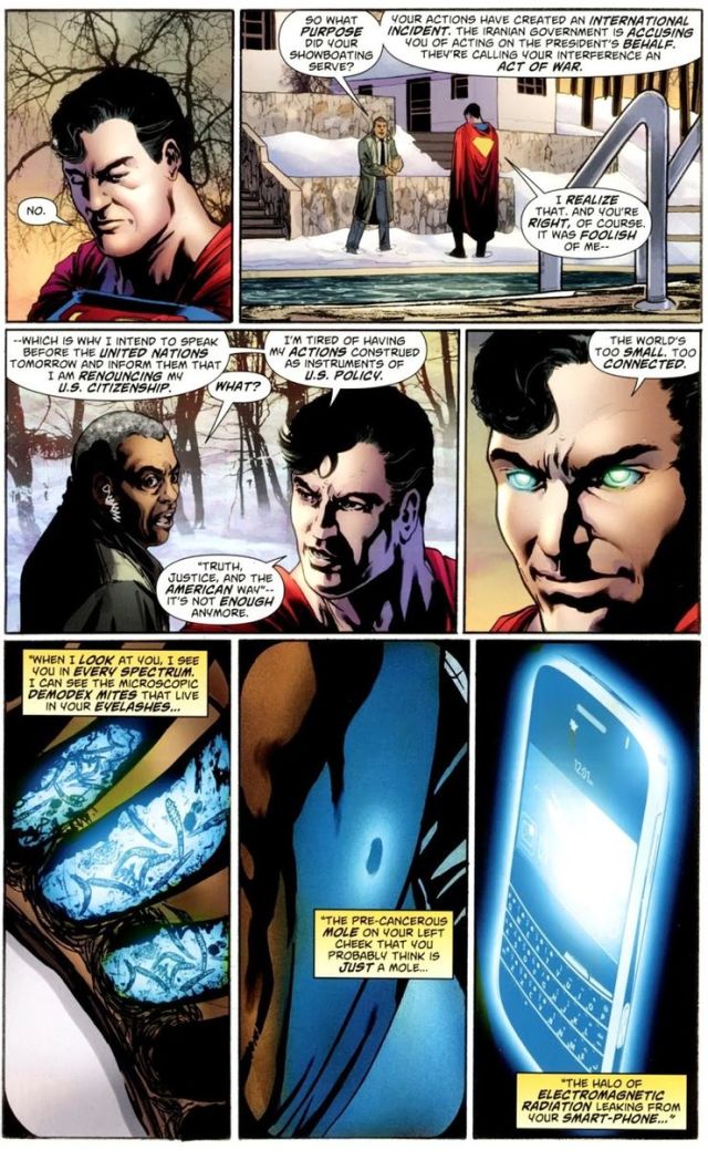 事實上,此次的宣言也與2011年的《動作漫畫》(Action Comics)第900期中所發生的故事有所相似,當時還是被賦予「Truth, Justice, and the American Way」象徵的超人,認為他應該不僅僅只能是代表美國公民,而是為世界公民,為世界上所有人服務的象徵英雄。