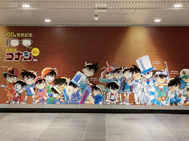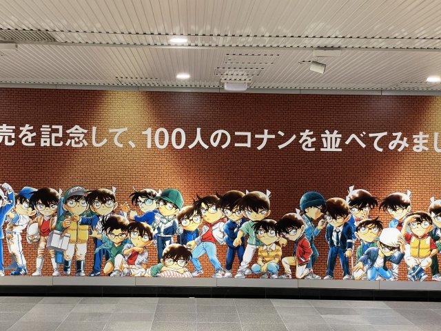 另外,日本地區為了紀念《名偵探柯南》漫畫第100卷里程碑,在田園都市線澀谷站B2F道玄坂A0・A1出口附近的地下道,也有著長22公尺的大型廣告看板,電視廣告也會出現放送迄今為止的經典事件,並一一投射到柯南的標誌性眼鏡上的動畫廣告。