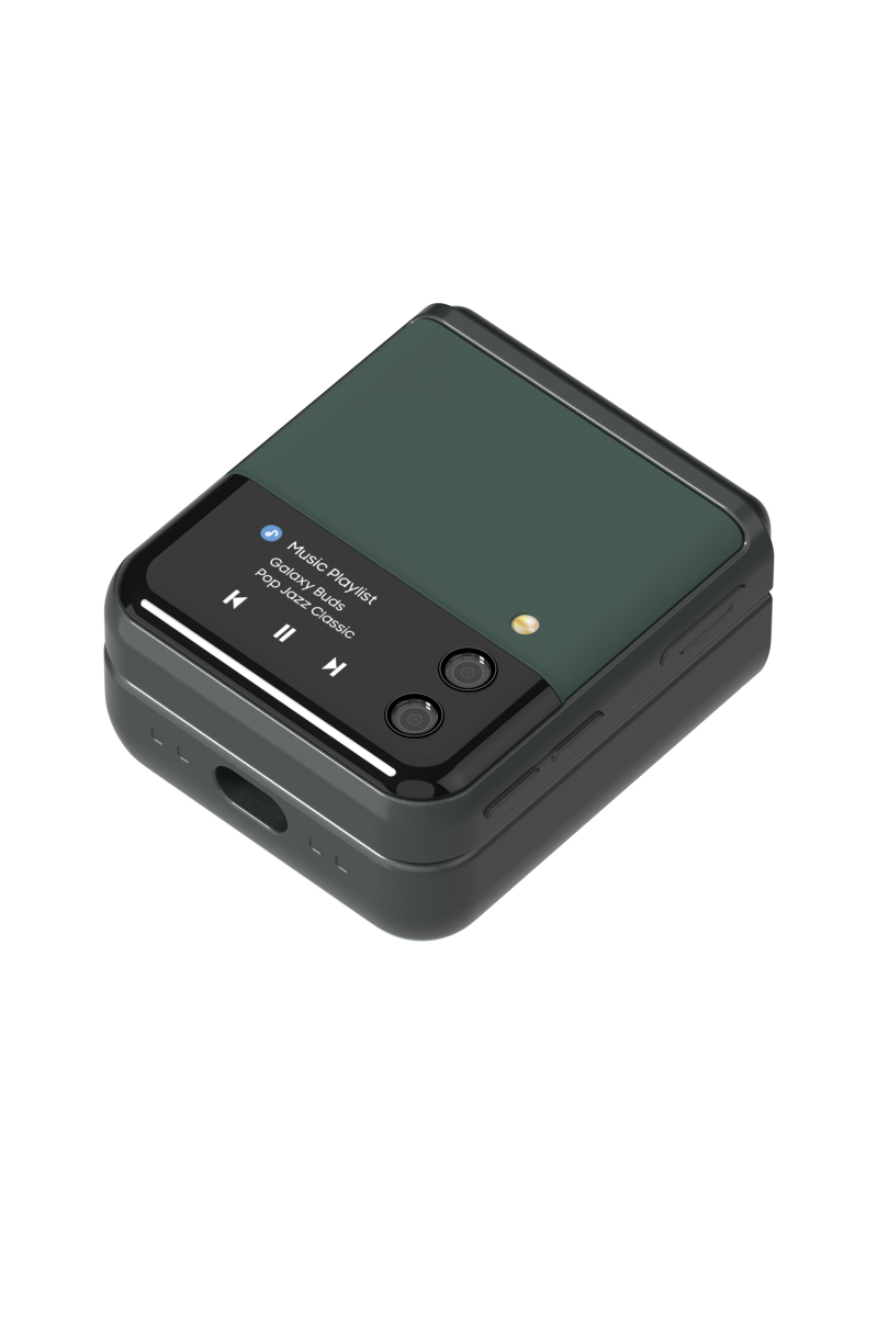 在現代人快節奏的日常中,智慧型手機的絕佳夥伴-真無線藍牙耳機也成為生活中不可或缺的配件之一,手機可以依照自我風格恣意變裝,耳機保護殼當然也要配合整體造型點綴一番。三星翻玩Galaxy Z Flip3 5G,將其設計融入上下對開的Galaxy Buds系列耳機殼,擬真的創意讓保護殼彷彿經過縮小燈照射,迷你再現!無論是封面螢幕與前鏡頭模組、雙色拼接外型、音量鍵與指紋感測區塊皆如實呈現,甚至為呼應Galaxy Buds系列的絕佳音感,將封面螢幕顯示畫面設計為音樂播放模式,耳機外殼的燈號顯示區則設計為Type C充電孔,完美還原Galaxy Z Flip3 5G外型的同時,也兼顧實用性,令人會心一笑。Galaxy Z Flip3 5G造型耳機保護殼適用於Galaxy Buds2 | Buds Pro | Buds Live機種,與Galaxy Z Flip3 5G本尊放在一塊,彷彿一次擁有兩台摺疊手機,星粉還不手刀珍藏!