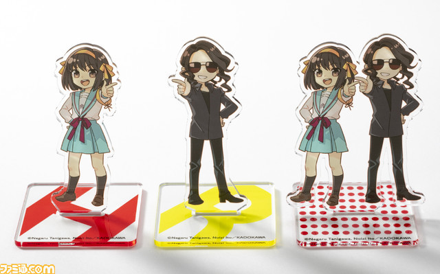 新作周邊由伊東雜音(いとうのいぢ)繪製,包含壓克力鑰匙圈、壓克力立牌,還有亮片杯墊,消費者可以選擇只購買繪有涼宮團長或ROLAND其中之一的版本,當然也可以購入雙人同時登場的周邊。