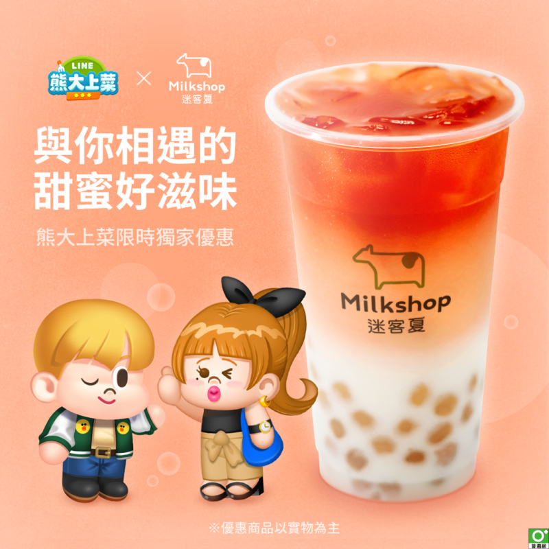 好康二、活動期間內,於「迷客夏」購買任一飲品即可獲得《LINE熊大上菜》虛寶序號一組,數量有限,把握機會唷!