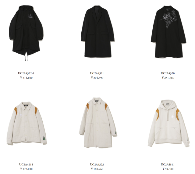 這次正式發售後,可以看到不少秀上的特色服裝都出現全貌,包含以三架 EVA 為色系製作的拚色羽絨外套,以及獨具特色的斗篷風衣都有出現。並結合 Undercover 獨有的剪裁與設計思維與福音戰士的世界觀設定,兩者碰撞出的風格絕對是潮流界的指標之一。 ( 本次系列商品可參考此處 )