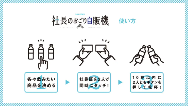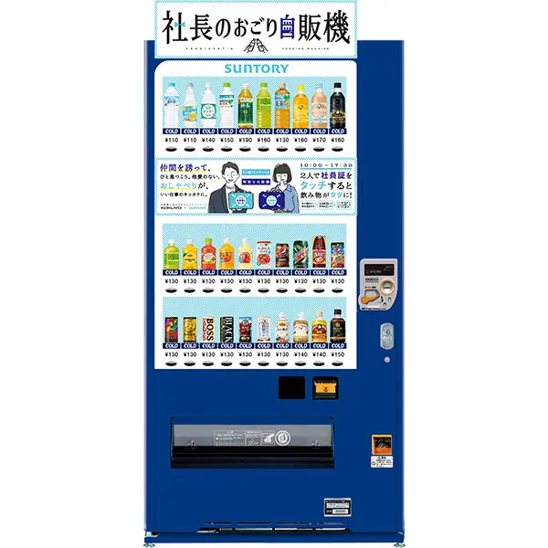 日本的職場文化想必不少網友都有耳聞,人與人的距離往往在職場上難以拉近,彼此間常常只是工作上的同仁,不容易交到好朋友。為了這個職場環境,日本國譽株式會社 (コクヨ) 與食品廠商三得利一同開發了名叫「社長零食自動販賣機」,設計上兩人同時消費時,可以獲得免費的獎勵機制,鼓勵同事一起使用並交流,實驗結果也顯示了有 97.8% 的回應是「促進了同仁交流」的好效果。