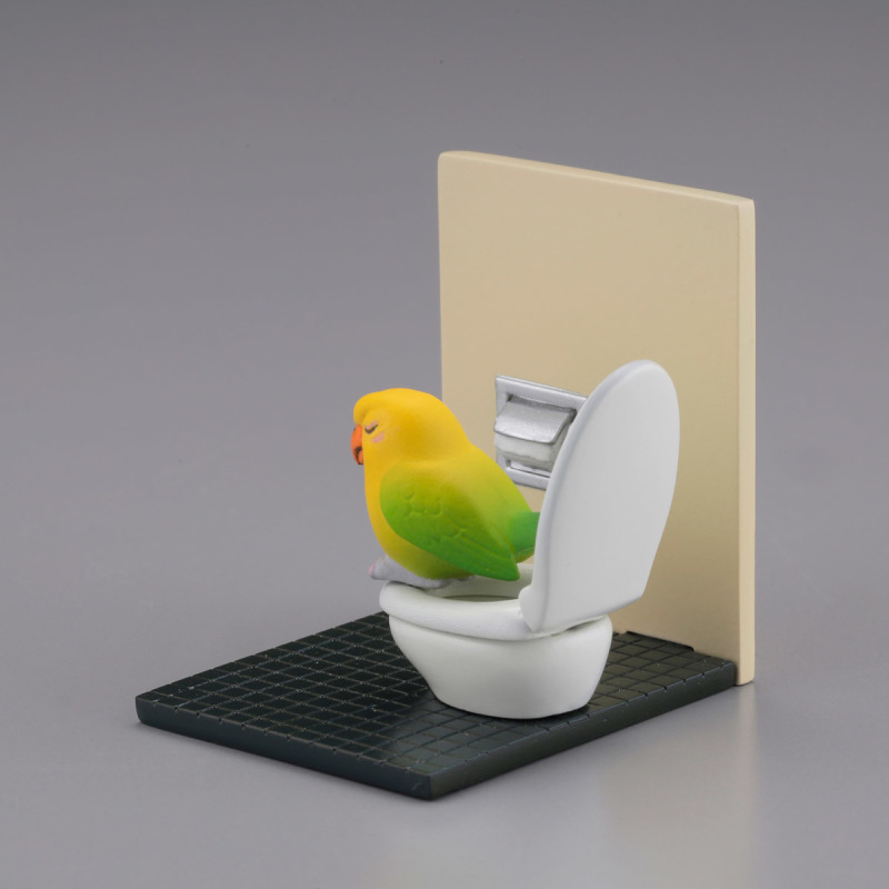 閉目養神的鸚鵡看起來正在好好地醞釀,鮮豔的羽毛顏色十分亮眼,剛好可以站在馬桶上的尺寸比例也很萌啊!