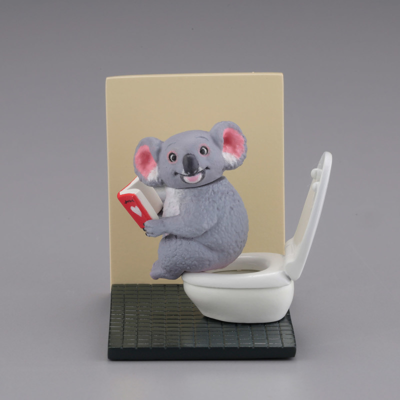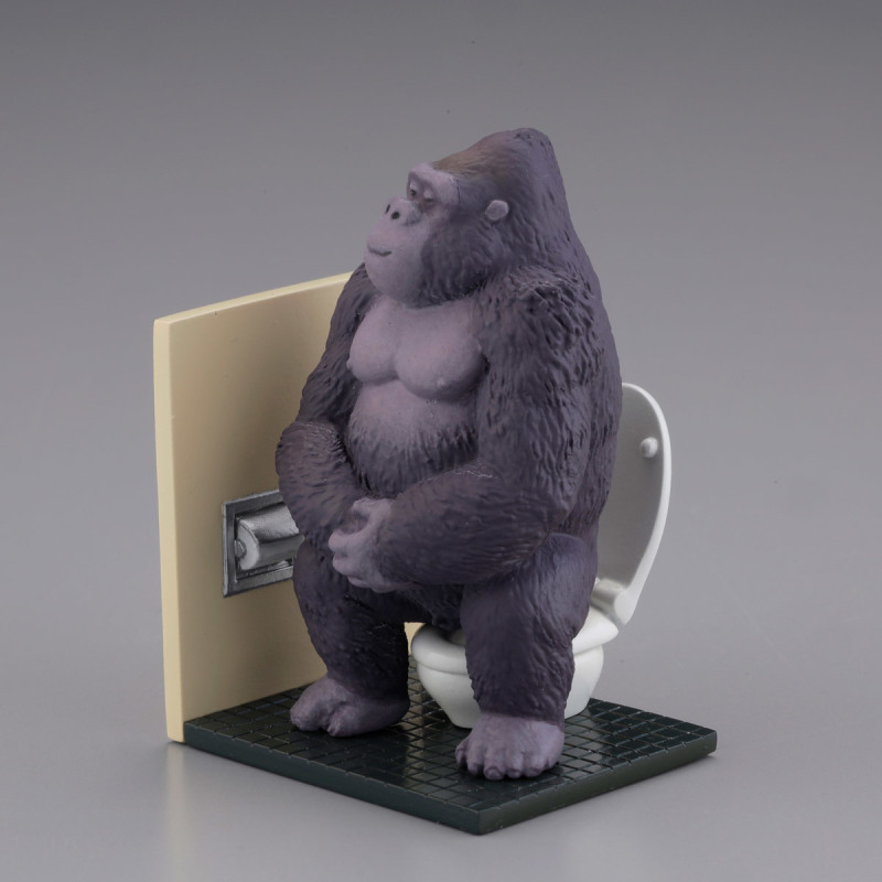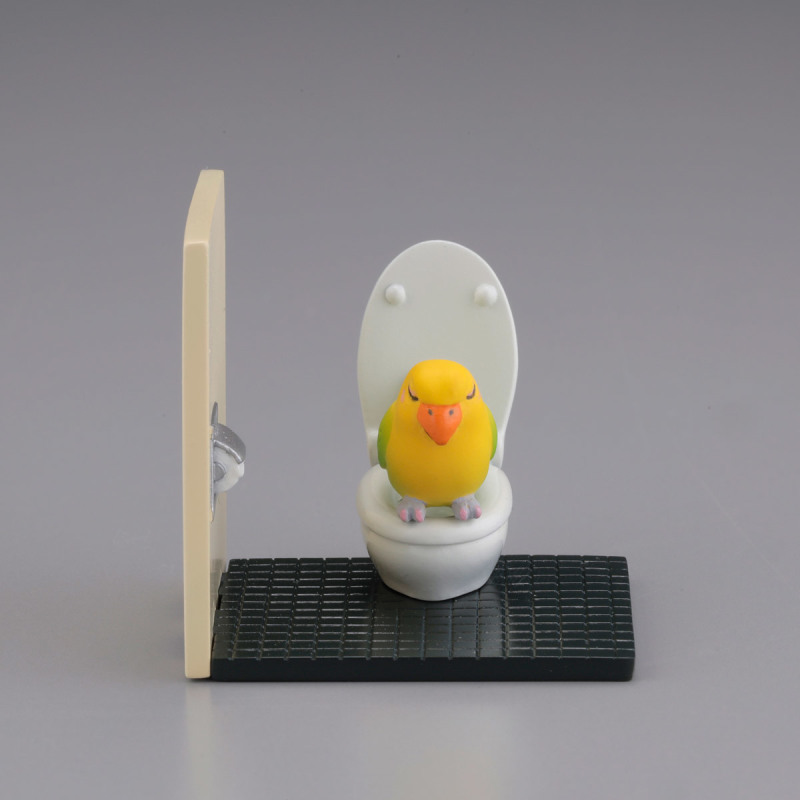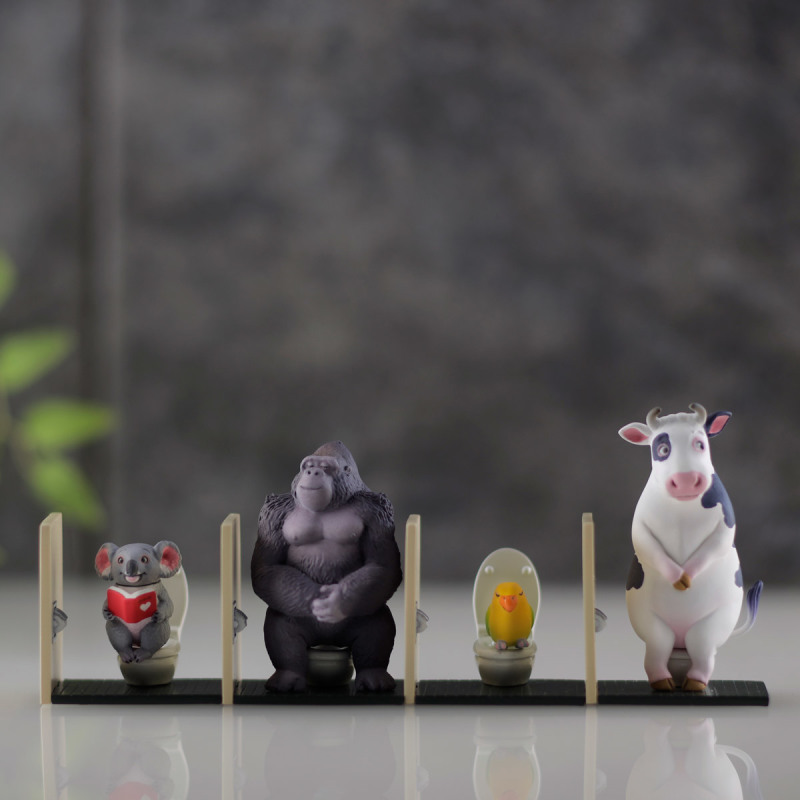 擅長在動物們身上表現出多樣的豐富情感,以可愛、溫暖的風格將動物擬人化的藝術巨匠「佐藤邦雄」,其筆下動物的神髓再次於這一款轉蛋生動呈現,「佐藤邦雄的動物們 廁所時光第二彈」共有 4 款,包含了大尺寸的乳牛(ウシ)、大猩猩(ゴリラ),與迷你的無尾熊(コアラ)、鸚鵡(インコ),並延續了前一彈的風格打造出西式馬桶與安裝有捲筒衛生紙的隔板,隔板擋不住大型動物所營造出的趣味視覺效果似乎也是這一系列的精髓所在,超級可愛啊!