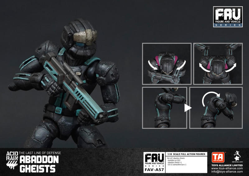 知名 3.75 吋科幻軍武主題收藏系列《酸雨戰爭》日前發表了多款人形與載具的可動玩具新作,本篇將帶來 FAV-A57「地獄靈騎」(Abaddon Gheists)的商品情報!