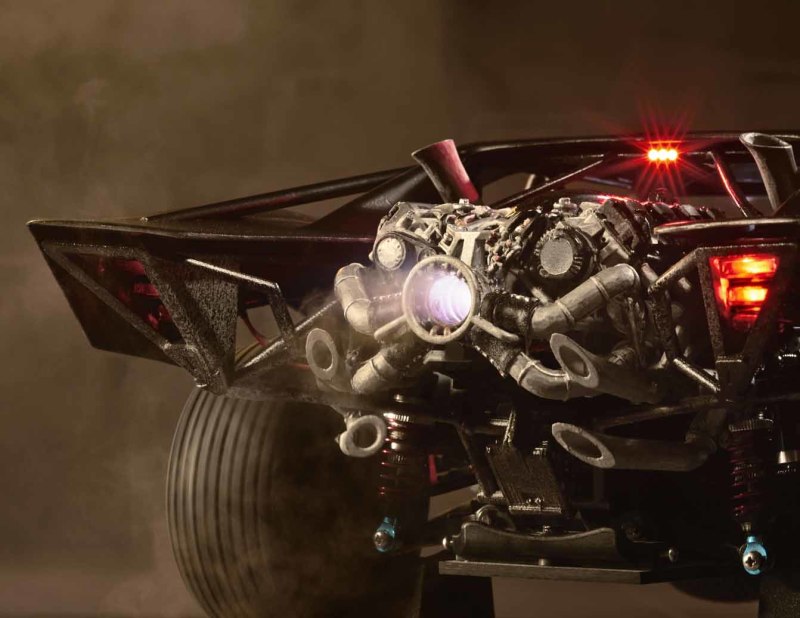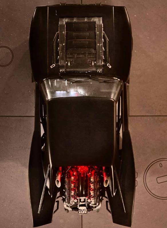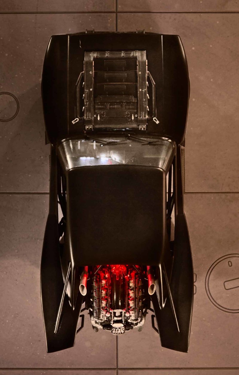 ▼前保險桿、進氣罩以及後方複雜的噴射口,帶來符合蝙蝠俠科技鉅子的意象,感受到披風戰士蝙蝠車的霸氣。