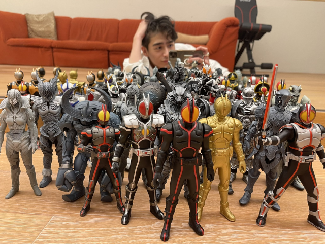 而濱尾脫離了狩崎的角色身分也依然還是個狂熱騎士粉,每週新集數播出後他都會在推特上分享自己的騎士公仔收藏,基本上多為軟膠公仔,但光是這數量就足以看出他對假面騎士的愛了。
