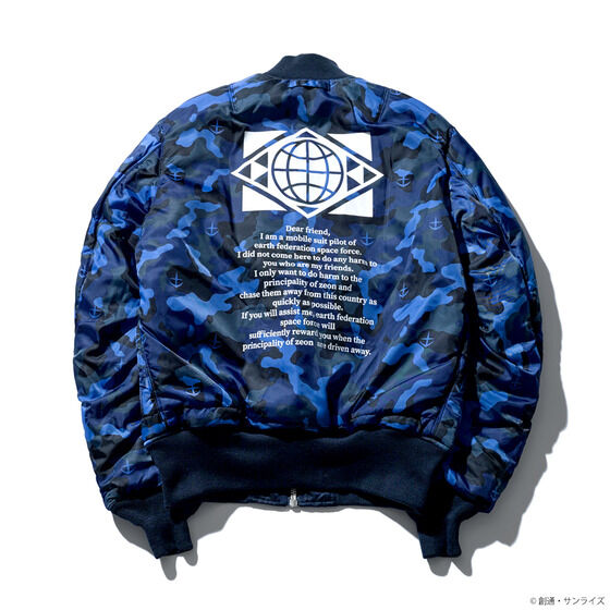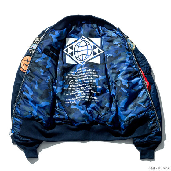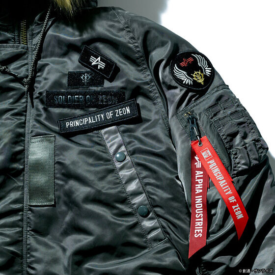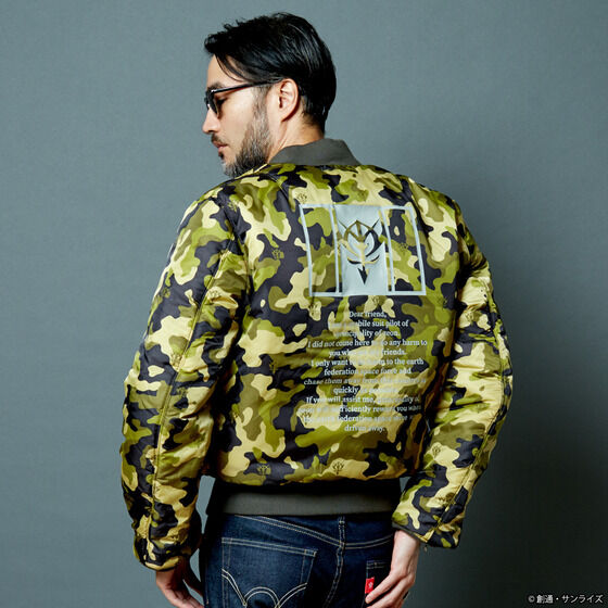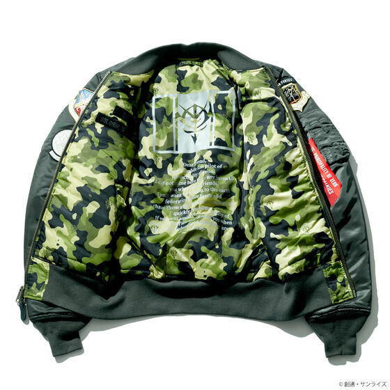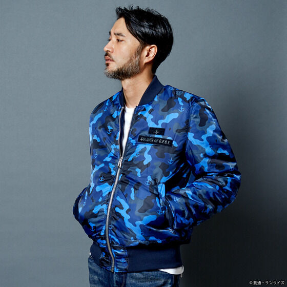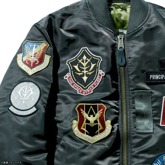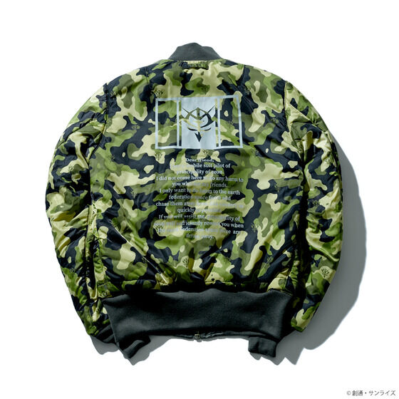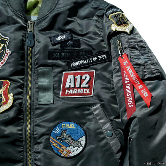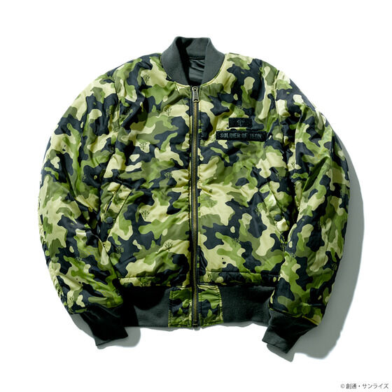 同樣以大量布章顯示出所代表勢力外,也使用雙面穿的設計。迷彩面使用吉翁軍所代表的綠色迷彩,結合吉翁軍徽打造而成。以正統軍裝的軍綠色為主色系,非常適用秋冬搭配穿著。