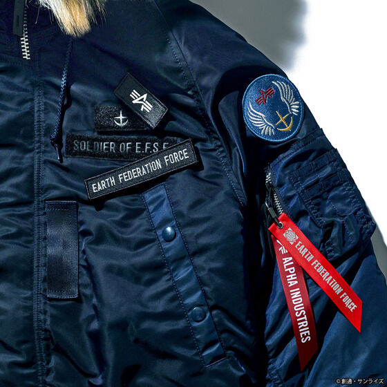 以正統 N3-B 樣式打造,包含可拆卸的毛領與高機能的多口袋設計。搭配聯邦的布章與後面下襬的 0079 地球聯邦字樣,絕對是聯邦粉絲不能錯過的禦寒神裝。