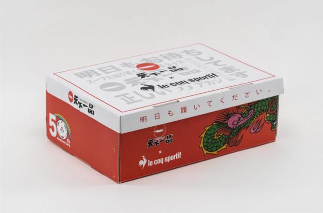 實際上這是為紀念拉麵連鎖店「天下一品拉麵」開業50週年,特別與Le Coq Sportif合作的聯名鞋款。