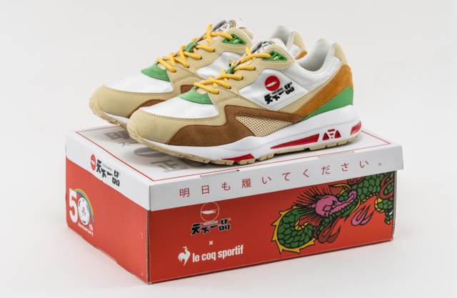 但是,若是跟拉麵品牌聯名的服飾,你願不願意穿呢?當然小編並不是指常見的T恤或是帽子,而是這款由日本超人氣拉麵連鎖店「天下一品拉麵」與「樂卡克(Le Coq Sportif,又稱公雞牌)」的聯名潮鞋啦~