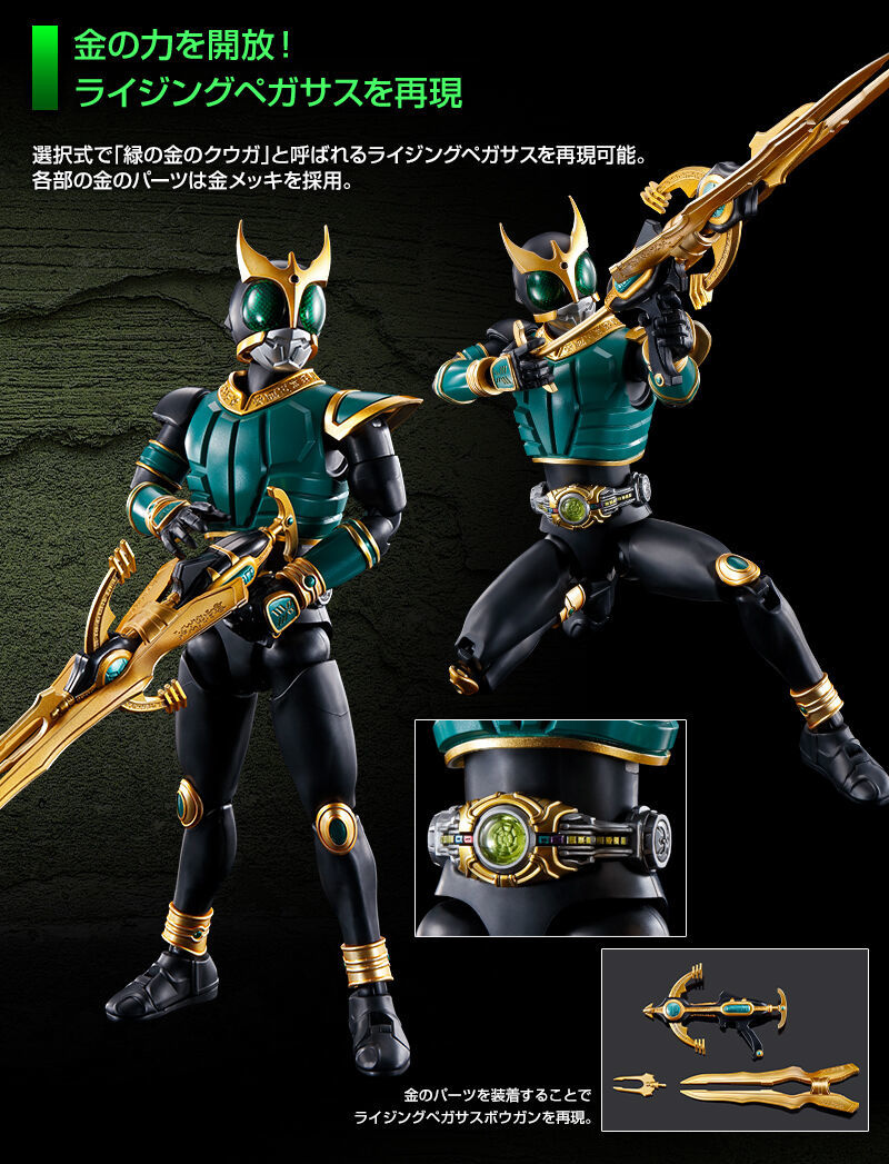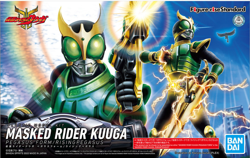 「Figure-rise Standard 假面騎士空我 飛馬/昇華飛馬形態」外盒使用新繪製的全彩插畫,套件以過去發售的全能形態素體為基礎,運用新規零件再現飛馬形態特徵的綠色鎧甲與腰帶,經過電鍍處理的金色部位呈現華麗的霧面金,並附有新規製作的專用武裝「飛馬十字弓」。