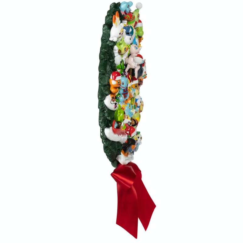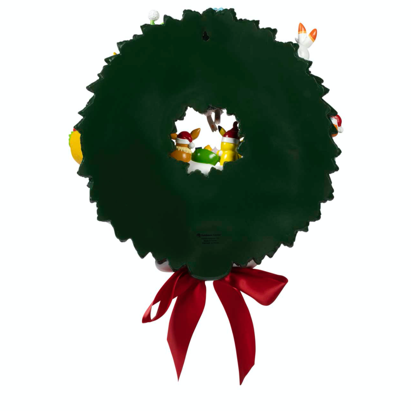 這一次的圓形花圈約有 35 公分,以樹脂(Resin)材質製作,最大賣點就在於集結了包含關都、城都、豐緣......到伽勒爾地區的各代御三家寶可夢,以及人氣可說是歷久不衰的皮卡丘、伊布、幻之寶可夢-夢幻,讓寶可夢們紛紛戴上紅色聖誕帽、圍上圍巾,展現出療癒滿分的聖誕節氣息!除此之外,還有像是寶貝球、蓋歐卡聖誕襪、裝滿寶可夢布偶的禮物袋這些元素,利用設置於背後的吊孔就可以輕鬆掛在牆壁上啦!