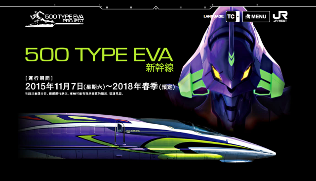 當時 2015 年《新世紀福音戰士》 迎接電視動畫版播出 20 週年,事逢日本山陽新幹線開業 40 周年,攜手推出了「新幹線:新世紀福音戰士計畫」,設計了 「500 TYPE EVA」列車,以初號機的色系為發想,不僅車體外觀經過精細打造,內裏的 1 號車廂更有放置插入栓駕駛座,車廂內更是打造屬於福音戰士世界觀的內裝設計,相信不少福音戰士粉絲當時都有朝聖的衝動。