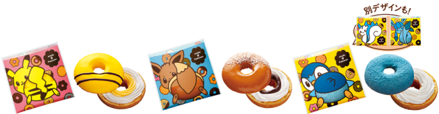 ▼ 另有三款以皮卡丘、伊布與波加曼為主題的甜甜圈,附有特製紙袋。