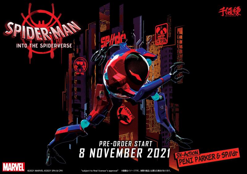 日本千值練旗下,可以再現劇中精彩戰鬥姿態的全新可動人偶「SV-Action」系列,在以人氣動畫電影《蜘蛛人:新宇宙》為主題,推出「邁爾斯·摩拉斯」、「彼得·B·帕克」後,第三彈「SV-Action 潘妮·帕克&SP//dr 」也將登場!參考售價為 13,750 日圓,預計將於 2022 年 06 月發售!