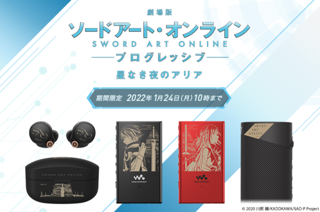 今年劇場版《刀劍神域 Progressive 無星夜的詠嘆調》才在 10 月 30 日日本上映,沒多久就確定了劇場版續篇將會在 2022 年上映。趁此時《刀劍神域》系列的人氣正旺,持續有合作也是正常的事情XD。近日宣布與 Sony 合作,推出聯名款的藍芽耳機&數位隨身聽&藍芽喇叭,讓你的音樂體驗也能充滿刀劍神域的氛圍。目前已在 ANIPLEX+ 官網上開放預購,預計將於 2021 年 12 月正式發售。