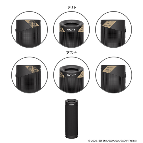 推出桐人&亞絲娜共兩款,以漆黑的色系打造,同樣以金色的圖案點綴。採用 Sony 的 SRS-XB23 型號,不但有防水防塵的功能,更有著專屬 EXTRA BASS™ 重低音強化音效,看似輕巧的外觀卻有著強大的低音輸出,更有著絕佳的電池續航力,不論居家使用或出門攜帶都非常適合。