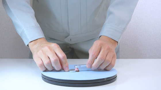 ▼固定住之後,拿著下方零件的右手開始轉動。