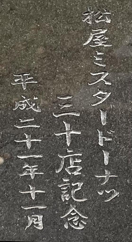那到底為何會有這個法蘭奇大神石像在這裡呢 ? 原來是因為在館旁有間連鎖餐廳松屋,而這個底座寫松屋 Mister Donut 30店紀念,松屋是 Mister Donut 日本東北地方的加盟商,而這個美術庭園也是松屋的相關事業之一,所以座落在此處。