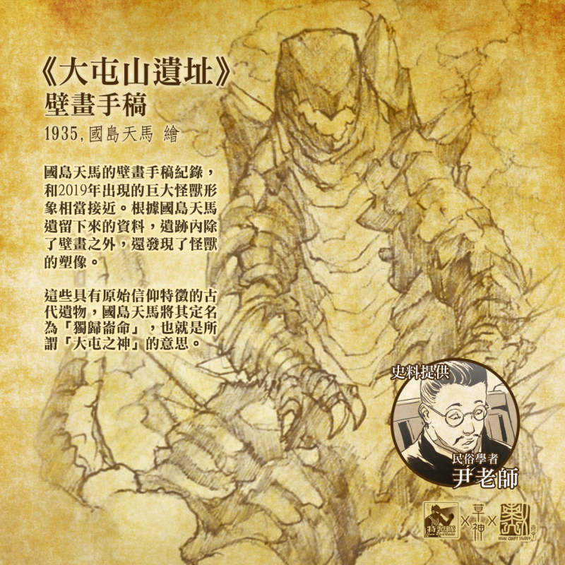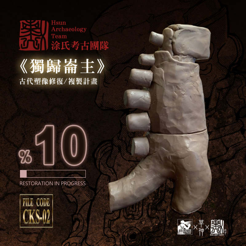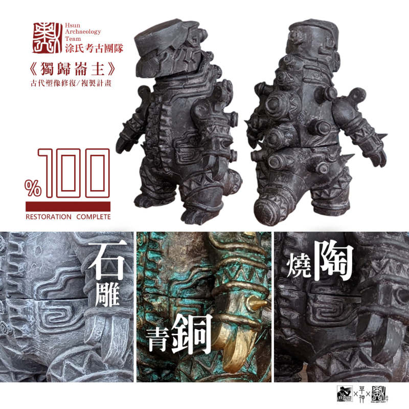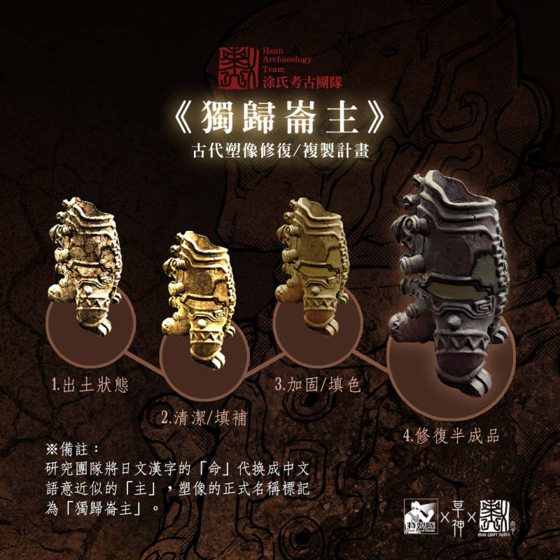 ▼古代神像 獨歸崙主作品在製作監修過程中,以「涂教授考古團隊」修復/複製調查報告的角度向粉絲們報告,充滿巧思~