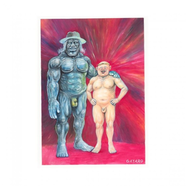 沒錯,這充滿謎團的名字,其實是大家熟悉的畫家「漫☆畫太郎」(漫☆画太郎)。雖然官方表示「manksy☆gataro」 是性別、國籍、外表通通不詳的謎之藝術家,不過懂的人都懂,這就是一種莫名奇妙但堅持到底的惡搞啊!
