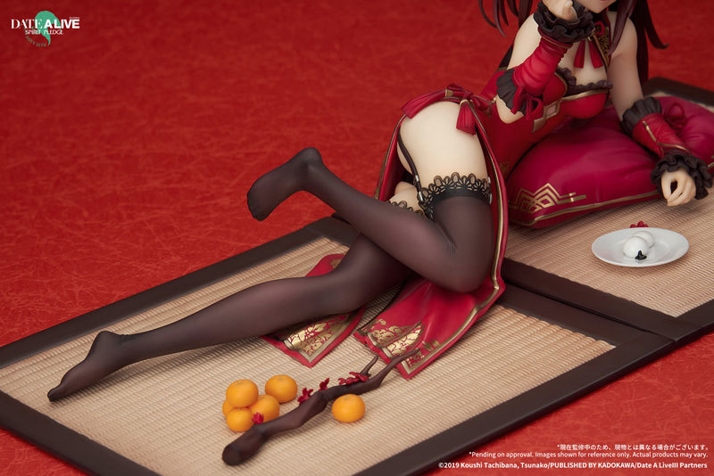 APEX「時崎狂三 新春旗袍ver.」1/7 比例模型,以新春插畫為基礎,將慵懶側躺姿的狂三立體化!穿著性感貼身的旗袍,臉上略帶挑釁的笑容斜躺在塌塌米上,一手還叉著湯圓,充滿過節氛圍。黑色吊帶襪包覆著修長美腿,從各角度欣賞都非常過癮~雙馬尾換成可愛的雙包子頭,胸口處的流蘇、荷葉邊十分精緻,細膩的金邊塗裝增添貴氣。