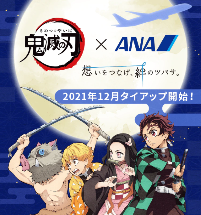 《鬼滅之刃》在去年上映劇場版無限列車篇後人氣大漲,第二季遊郭篇也即將播出,更將「無限列車篇」轉戰小螢幕播出,合作也陸續推出。近日宣布與日本 ANA 全日本空輸展開合作,將會在日本國內班機推出專屬《鬼滅之刃》的班機,打造專屬的班機外觀,將於 2022 年 1 月啟航。