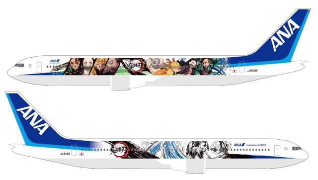 這次的合作班機,班機外觀以鬼滅之刃的人物打造,一眼就能認出兩者合作的樣貌,可以看到包含動畫的炭治郎、禰豆子、善逸與伊之助都現身,另一側則為漫畫使出水之呼吸的炭治郎為圖案設計。