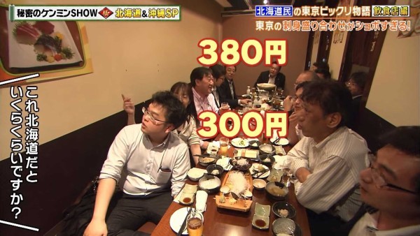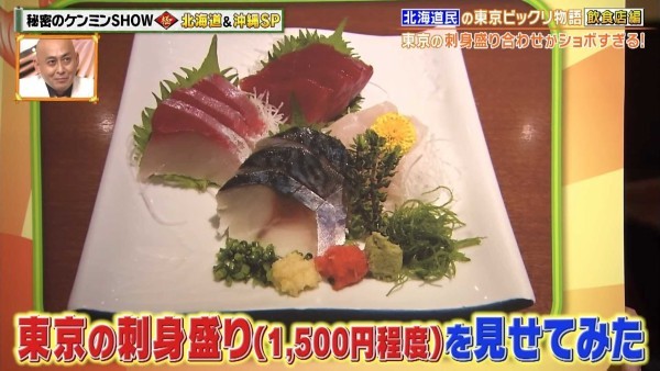 製作組改詢問大家,這樣份量的生魚片,如果是在北海道的話,會賣多少錢呢?