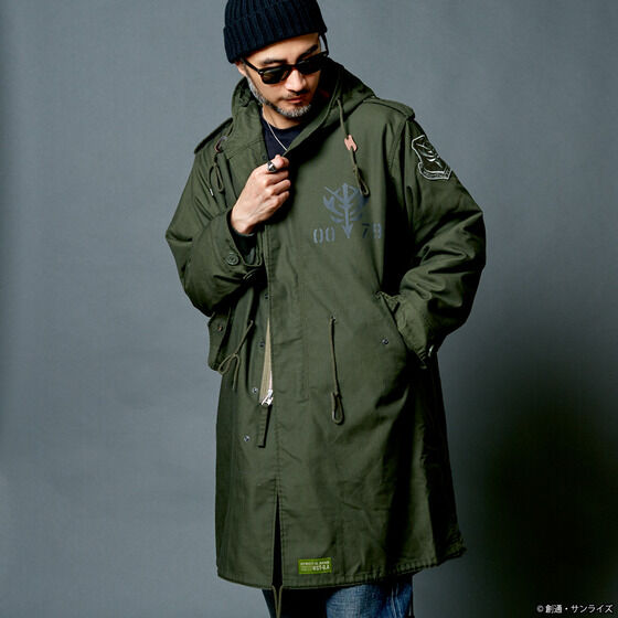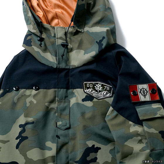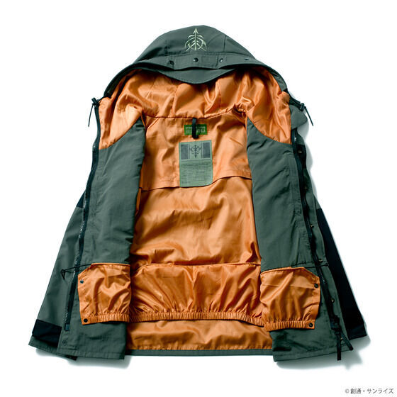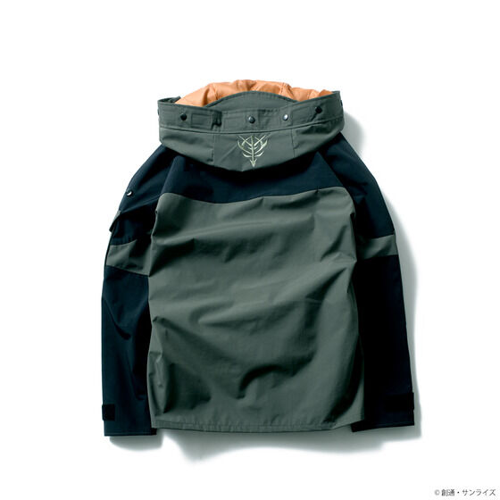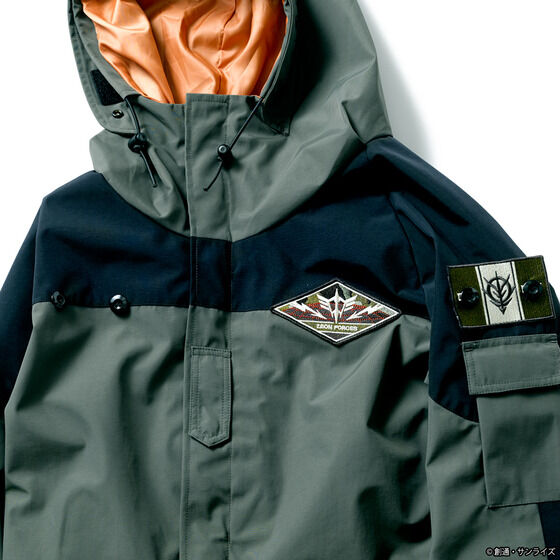 以 1980 年代美軍所開發的 ECWCS PARKA(EXTENDED COLD WEATHER CLOTHING SYSTEM)為基礎版型,為適應全天候甚至極地保護的系統裝備服飾。原色款以吉翁經典的軍綠打造,配上兩胸軍事布章以及外套連帽處的吉翁軍軍徽刺繡,展現出完整的吉翁風範。外套內裡更有著橘色亮眼的 TYPE 3LAYER 設計,具有防風防寒以及防潑水的材質,機能性更加提升。