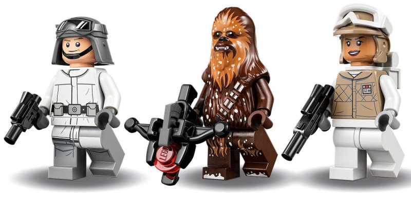 再來是以「人偶+載具」形式呈現、能讓你把玩出反抗軍 VS 帝國軍場面的盒組 75322(不過反抗軍戰力薄弱XD),利用五百多片零件打造出一台高約 26 公分、多處搭載可動的 AT-ST,頂蓋可以掀開放入帝國駕駛員,還能把玩威力升級的彈射裝置,人偶部分除了上述的帝國駕駛員之外,還有丘巴卡跟一名反抗軍士兵,另外,磚拼形式的帝國探測機器人(Probe Droid)也很不錯喔。