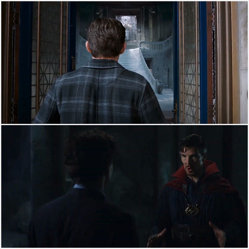 新預告這幕可以看到,彼得身上的服裝變成西裝外套,由此可以得知,彼得在橋上被綠惡魔與八爪博士攻擊後,再度找上了奇異博士。