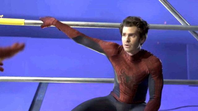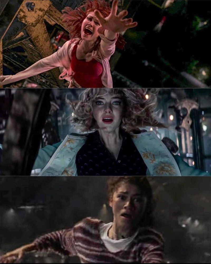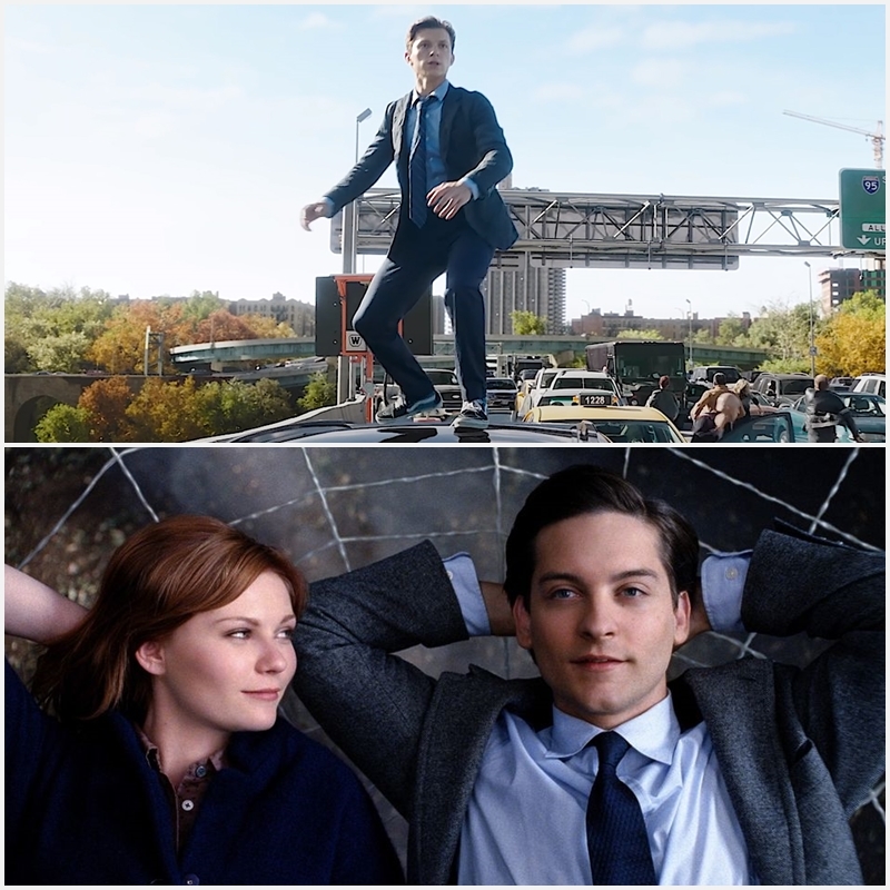 在預告的尾聲,我們看到了MJ因為鷹架的崩壞而墜落,在過去的三個不同版本蜘蛛人電影中,都出現了相同的場景。