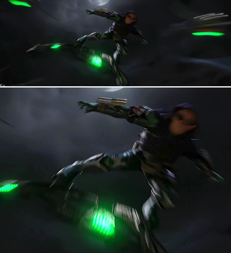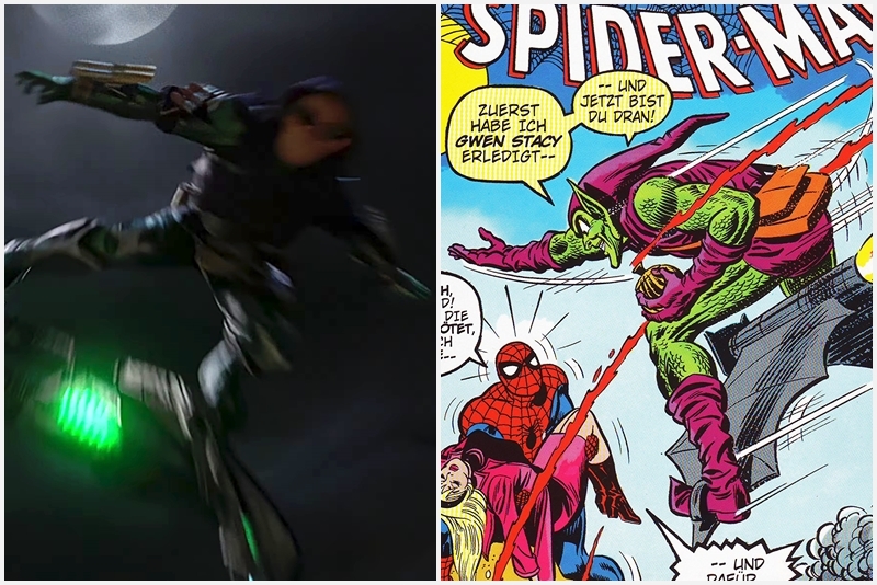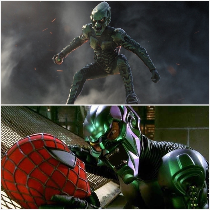 除了上面提到出現了陶比版的經典造型綠惡魔之外,預告中也出現了另一個帶著防風鏡造型的綠惡魔,這個造型令人聯想起陶比版《蜘蛛人3》中,由詹姆斯·法蘭科所飾演的二代「綠惡魔 哈利奧斯朋」。