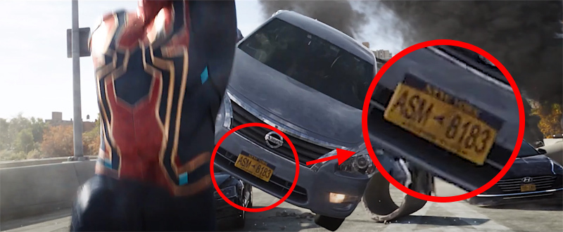 本片導演瓊‧華茲(Jon Watts)證實他會在電影裡埋漫畫編號的彩蛋,這台被砸向蜘蛛人的車,車牌寫著ASM-8183,也就是1978年發行的《The Amazing Spider-Man》8月號第183期。