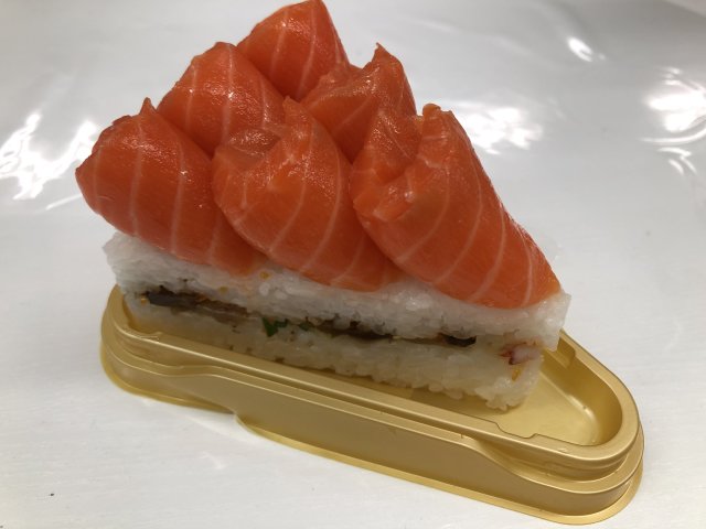 不過,事實上這樣的創意食品在日本也確實不算少見,在推主K所發佈的這則推文底下,就有不少網友真的分享了在某幾間壽司店所販賣的「壽司蛋糕」,同樣都是以壽司米與生魚片所製作的,如果要更加澎湃的話,上頭還可以加上幾條鮮紅蝦子或是螃蟹,視覺上還真的是華麗不少。