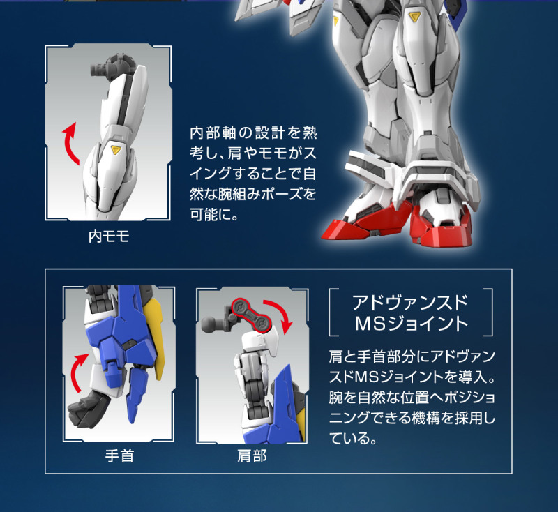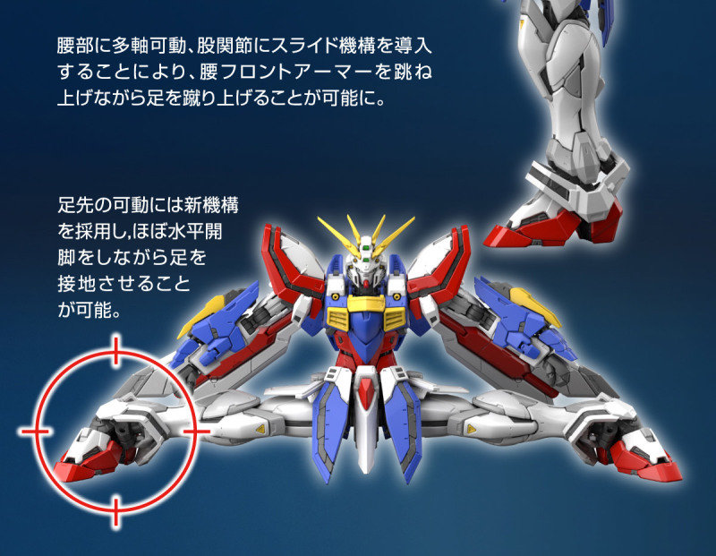這其中包含了頸部的三軸可動結構、肩腕部的伸縮機構、膝關節的伸縮與裝甲連動機構、腰部的多軸可動與髖關節的滑動構造,腳掌的新結構更能接近 90 度彎曲,在劈腿時依然能保持接地。