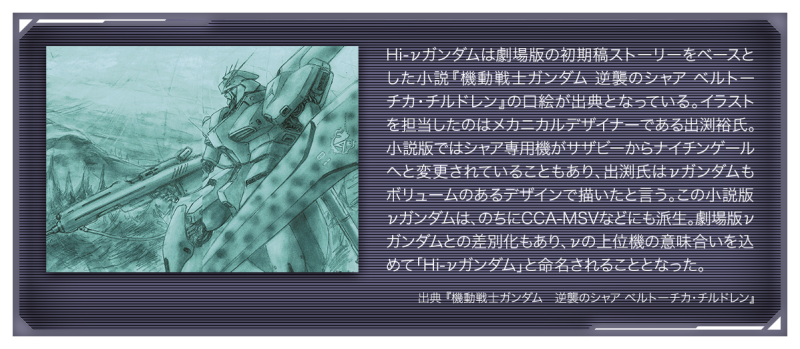 由日本 BANDAI SPIRITS 公司收藏玩具事業部 TAMASHII NATIONS 發行的人氣合金玩具『METAL BUILD』系列今日發表了出自小說《機動戰士鋼彈 逆襲的夏亞 貝托蒂嘉的子嗣》的最新商品「Hi-ν鋼彈」預計於 2022 年 07 月發售的消息。