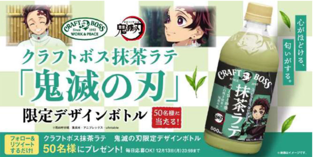 《鬼滅之刃》在去年上映劇場版無限列車篇後人氣大漲,第二季遊郭篇也即將播出,合作也陸續推出。這次宣布與三得利公司旗下咖啡品牌「BOSS」合作,將推出聯名瓶裝飲料與推特抽獎活動,有大哥炎柱與主角炭治郎的限量聯名外套可以抽獎,等你成為抽獎的幸運兒!