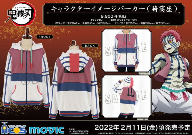 《鬼滅之刃》在去年上映劇場版無限列車篇後人氣大漲,第二季遊郭篇也即將播出,合作也陸續推出。近日宣布與專門推出日系動漫畫週邊的日本 MOVIC 公司(株式会社ムービック)推出以去年上映的劇場版-無限列車篇中與炎柱大哥對決的上弦之參-猗窩座為靈感,設計的連帽外套。售價為 9,900 日圓,目前可於官網訂購。