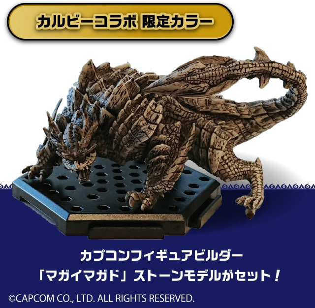 這次推出的為 2021 年新款的限定零食組合包,組合內包含 10 個限定包裝的卡樂比鹽味洋芋片,除了用特製的盒裝裝載外,更附贈一個怨虎龍 ( マガイマガド )的模型合作限定色為贈品,絕對具有收藏價值。