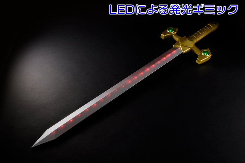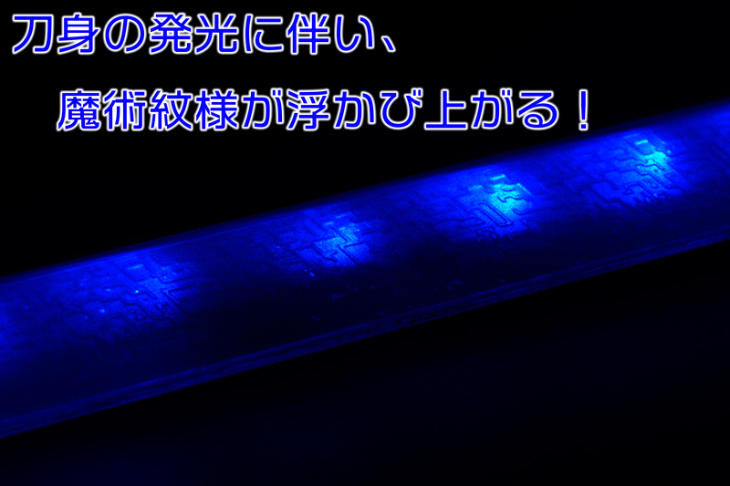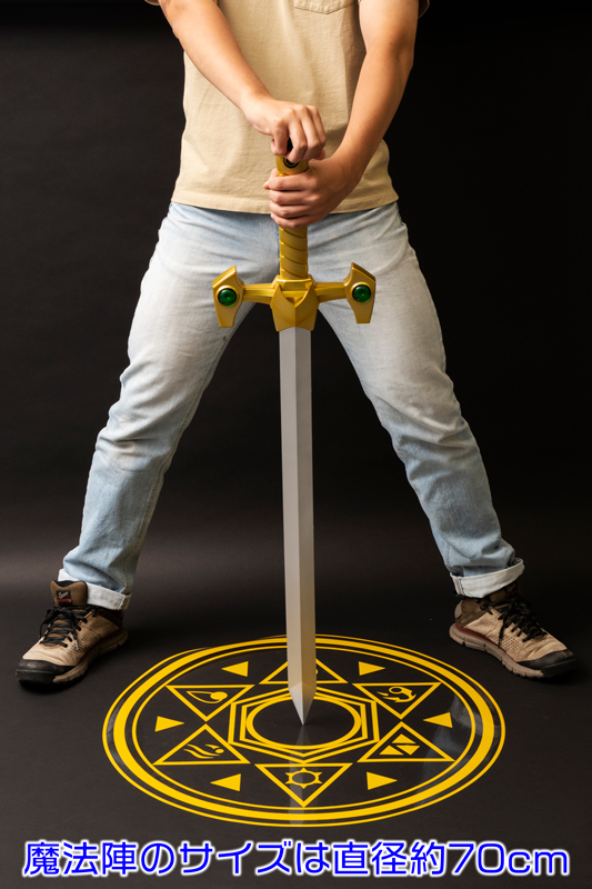 此外劍身內更藏有 LED 燈發光機構,能夠隨著必殺技發動發出光芒、讓劍身浮出內部的魔術紋様,揮劍時藉由動作感測器便能連動音效機能。此外還將推出附有「魔法陣」特典的限定版,藉由直徑約 70 公分的魔法陣膠片再現施展「原質烈風」的場景!