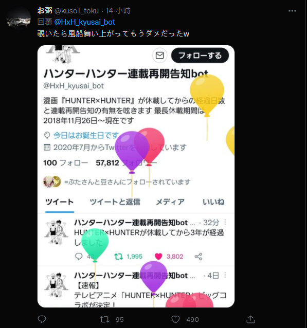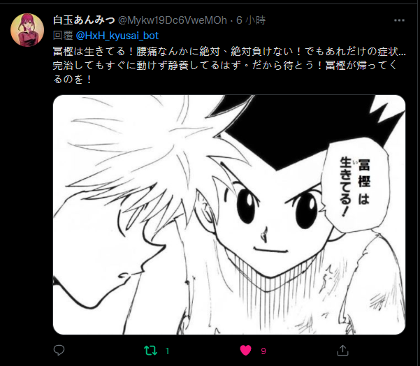 事實上,在今年4月時,日本2ch也曾傳出冨樫義博辭去漫畫家的未證實消息,儘管在當時實際上為2018年9月20日發行的《北斗神拳 草莓味》單行本第9卷中的訪談,但如今來看,不管作者是否仍然是漫畫家,或許對於部分讀者來說,早就已經將小傑找到父親這件事當成《HUNTER×HUNTER》最終大結局了…