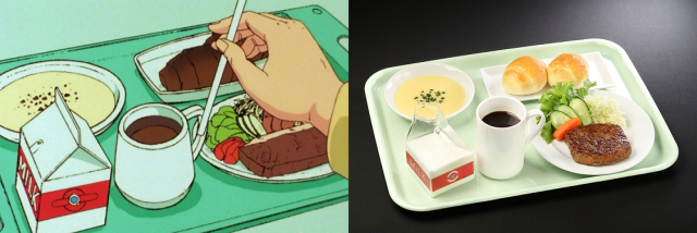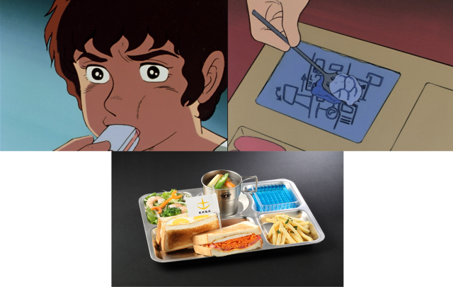 標榜地球聯邦軍的駕駛員餐點,連劇中那個不明的藍色可食用物體也完美再現,也包含精美的三明治、薯條與沙拉。售價 1,430 日圓。