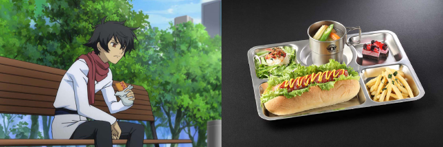 動畫中剎那坐在街道上的長椅吃的熱狗,官方將其製作為套餐供各位享用。售價 1,430 日圓。