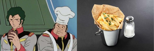 ▼《機動戰士鋼彈》 駕駛員補充鹽分的薯條
