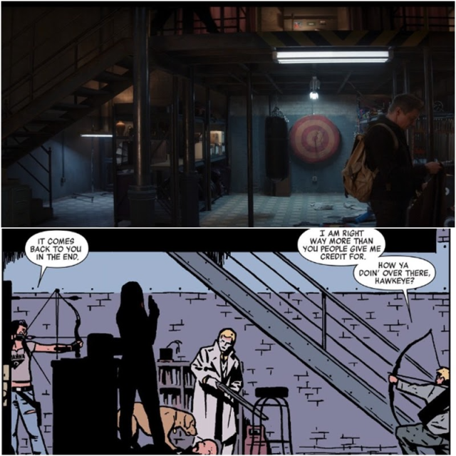 凱特在雜貨店問克林特是不是要去藏身的地方 (safe house),有趣的是在漫威電影宇宙中神盾局在各地有多處藏身基地,其中《復仇者聯盟:奧創紀元》中揭示,克林特一家所住的農場就是尼克福瑞安排的藏身處。