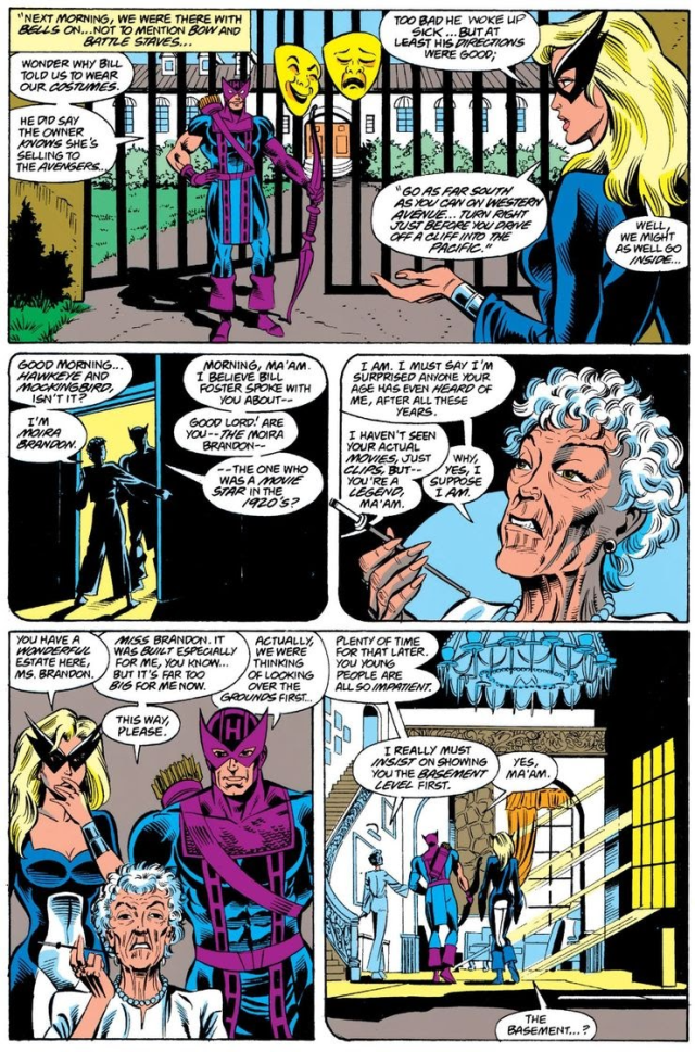 凱特的阿姨名叫 Moira Brandon,原本是一位電影明星,漫畫中則是西岸復仇者將她的住所買下當成祕密基地,某次 Moira 將鷹眼等人從反派「交叉火」手中救下而犧牲,被賦予了『復仇者聯盟成員』的榮譽頭銜。 此外在這裡也能看到一張電影海報上有她的名字,看來電影宇宙也保留了她曾是電影明星的設定。